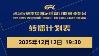 2025赛季中国足球职业联赛颁奖会将于12月12日晚启幕。